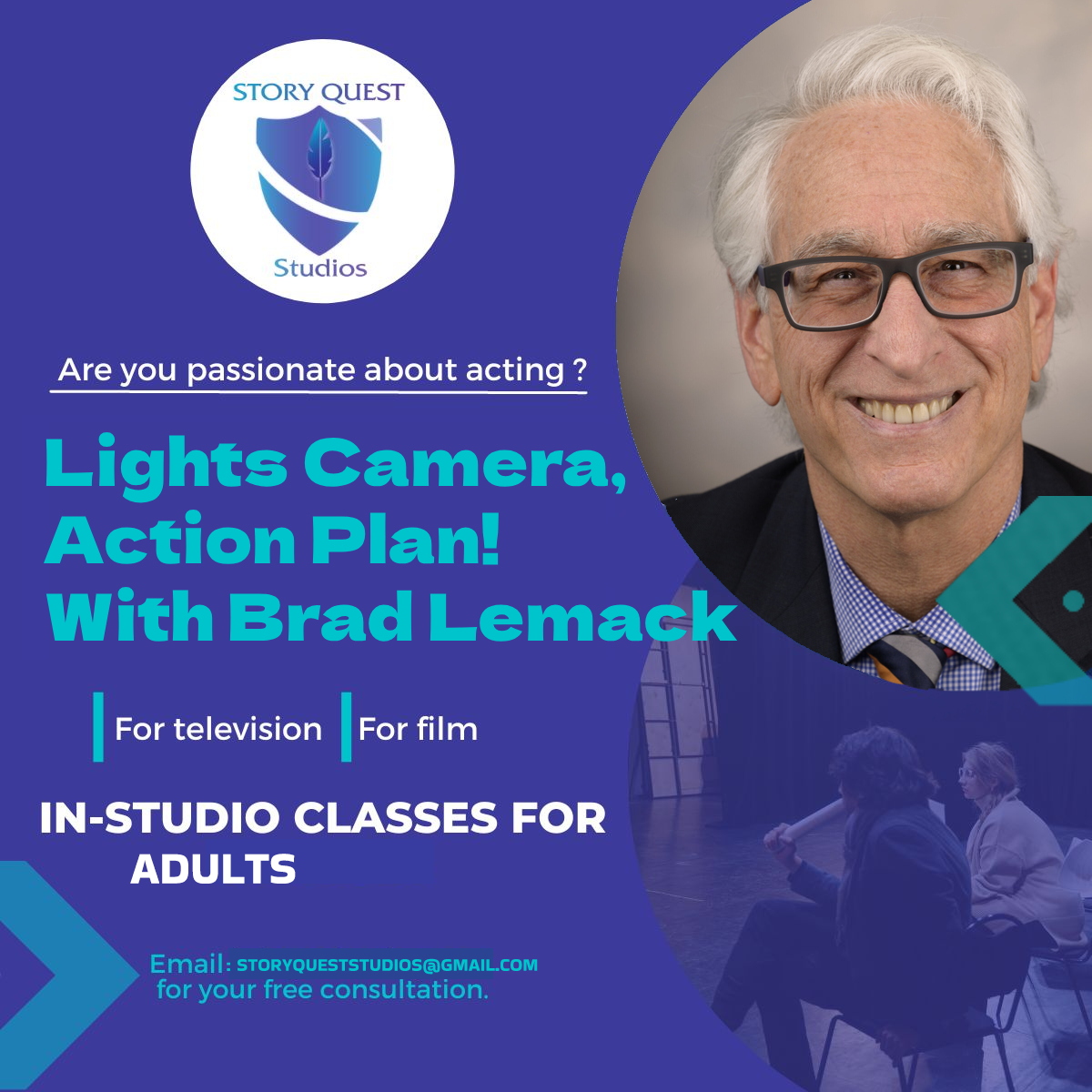 Join Brad’s Lights Camera Action workshop, only at Story Quest Studios. It comes with Brad’s book, The New Business of Acting, which dissolves the walls of disbelief that stand in the way of your career and life as an actor. Change your vision of the field in an ever changing landscape, and take control of your destiny as an artist. Find out what you can do as a creative to get ahead of the game.